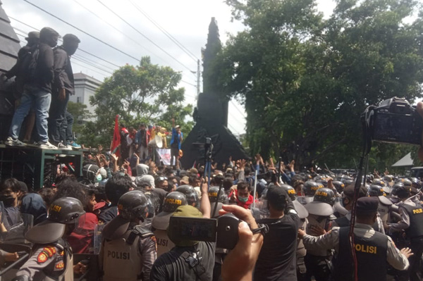 SEMARANG, LPMMISSI.COM– Ribuan massa penolakan Omnibus Law yang tergabung dari buruh, mahasiswa, dan elemen masyarakat sempat menuai kericuhan. Gerbang Kantor Gubernuran Jawa Tengah (Jateng) dirobohkan massa aksi.