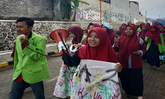 Kegiatan orasi aksi tersebut dilakukan dengan membawa spanduk berisikan cap tangan sebagai bentuk petisi anti narkoba serta bersama-sama menyuarakan bahaya narkoba yang dapat menimbulkan HIV/AIDS terutama pada kalangan mahasiswa.