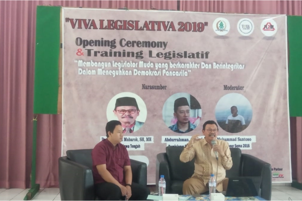 Acara tersebut turut mengundang narasumber dari DPRD Jawa Tengah, Romli Mubarak. Ia menjelaskan bahwa legislator harus memiliki sikap Integritas yang tinggi.